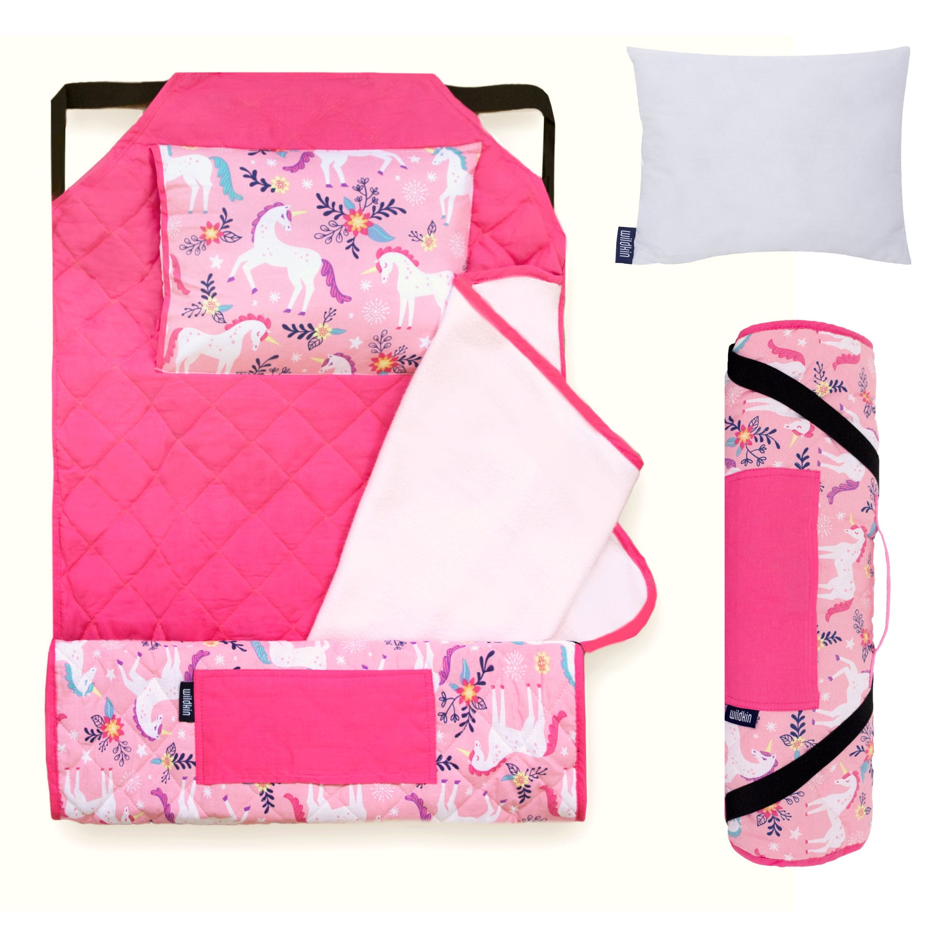 Wildkin’s Magical Unicorns Pink Modern Nap Mat was designed with daycare and preschool naps in mind. The Modern Nap Mat features elastic straps at each of the four corners that secure it to a daycare or preschool cot. Your little one’s naptime will be that much sweeter when they’re tucked inside the Modern Nap Mat.