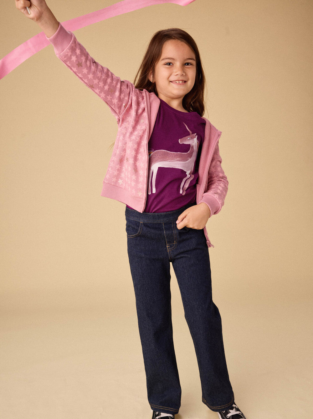 A magical favorite, reimagined with a South Korean twist. This long-sleeved tee features a hand-painted unicorn in dreamy, pastel hues with a rainbow mane inspired by the bold color palettes seen in K-pop fashion and Korean street style. Crafted from 100% soft cotton jersey, it's perfect for everyday adventures--whether they're chasing rainbows or dancing to their favorite tunes.