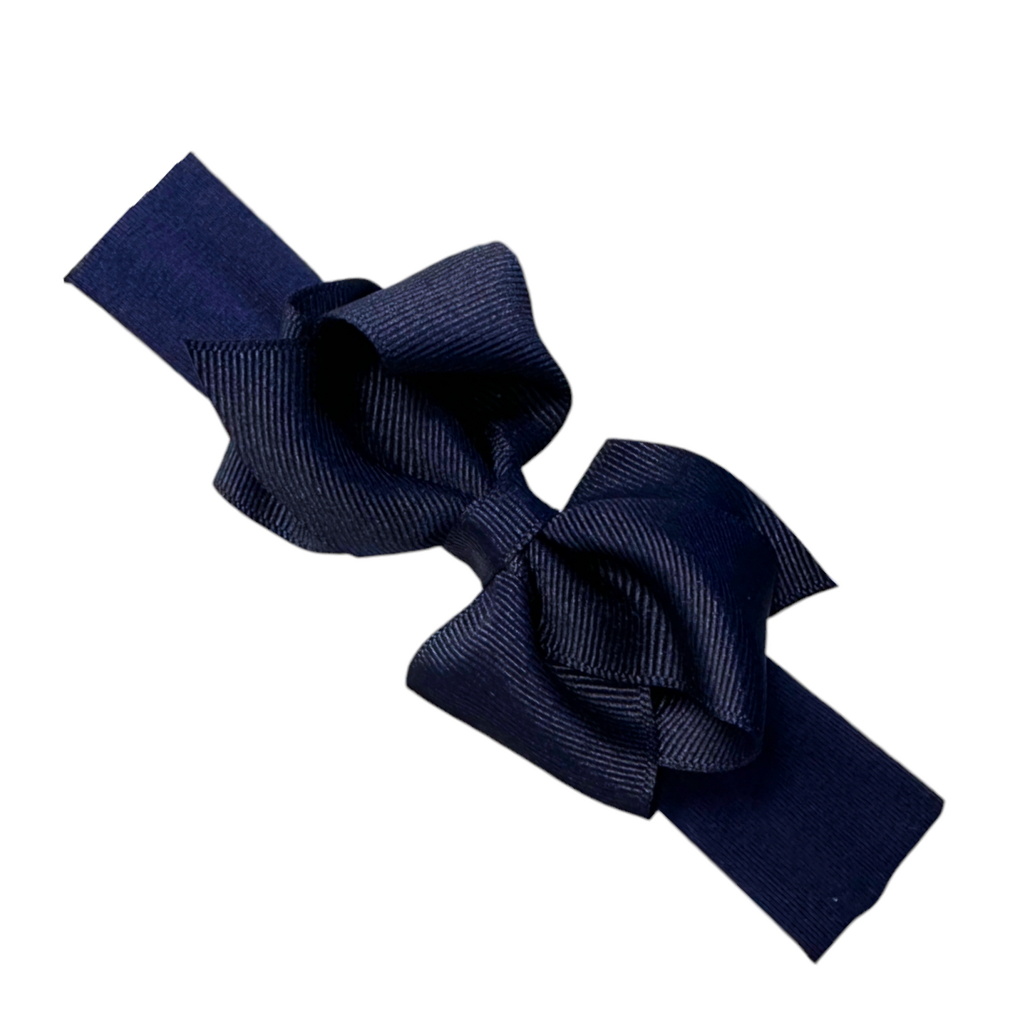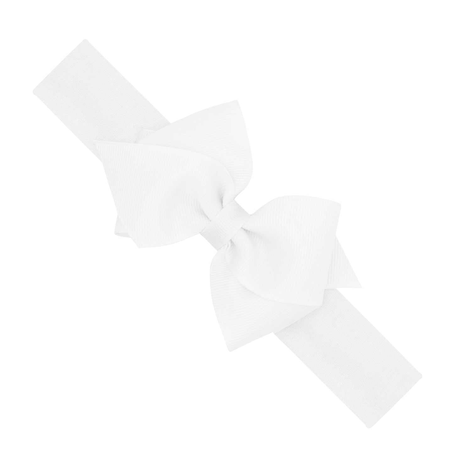 Our extra small classic grosgrain bow is now perfect for baby with our matching soft cotton jersey band. Available in light pink and white.
