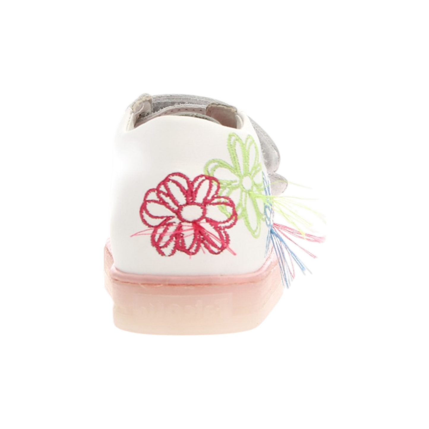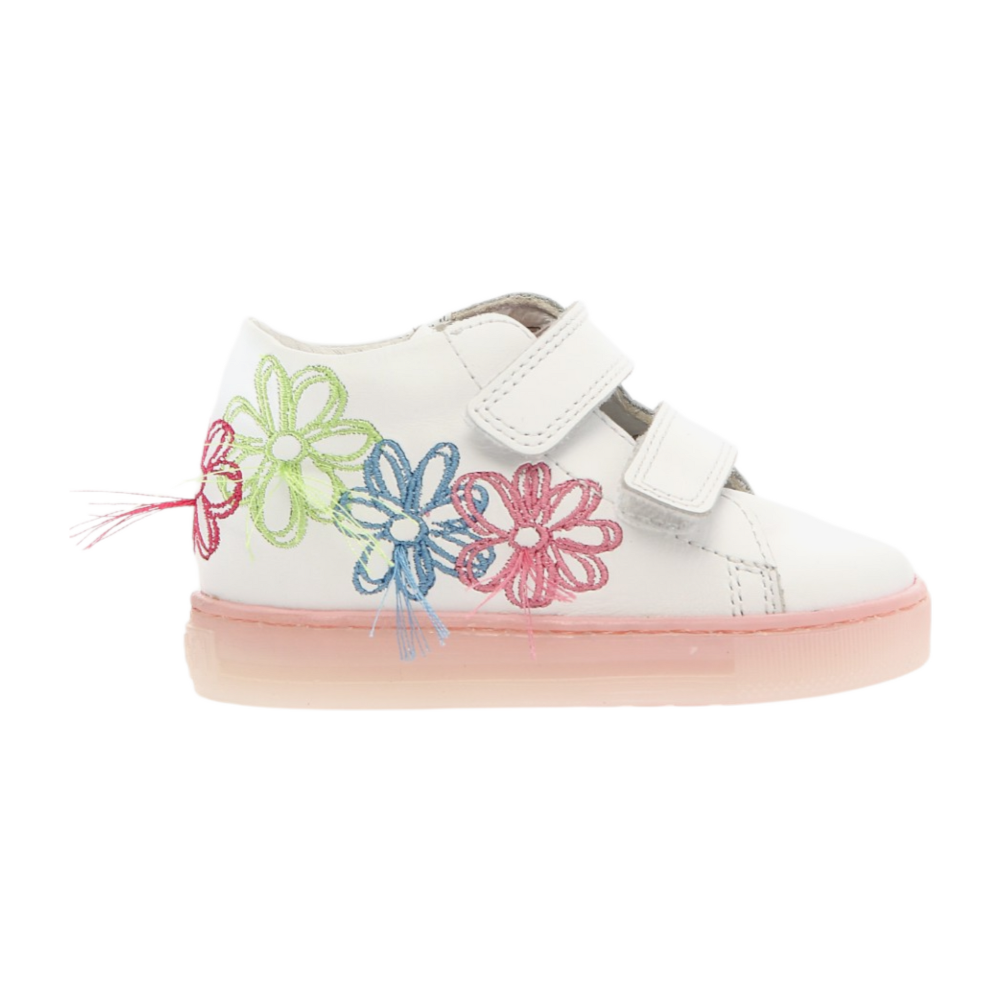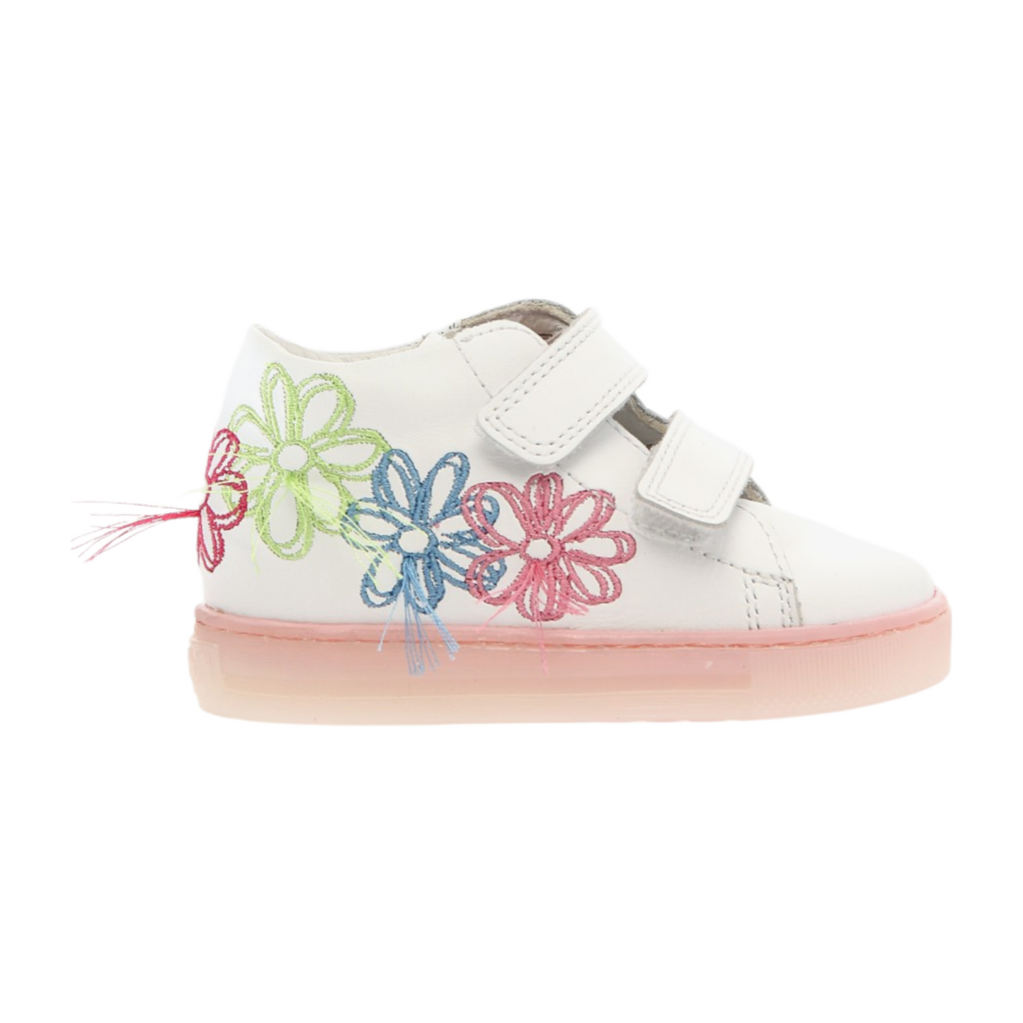 Discover the leather sneakers with flowers, perfect for little explorers! Made of high quality leather also for the lining and the insole, they guarantee maximum comfort on every adventure. The velcro fastening makes them easy to put on and allows children to play safely.